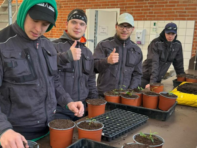 Prakses programmā - darbs siltumnīcā. Jaunieši tika sadalīti četrās grupās, lai veiktu dažādus uzdevumus. Viens no uzdevumiem bija pārstādīt stādus, izmantojot ar augsni sapildītos podus un speciālu iekārtu. Kad tas tika izdarīts, mūsu jaunieši piepildīja podus ar augsni un veica pārstādīšanu.