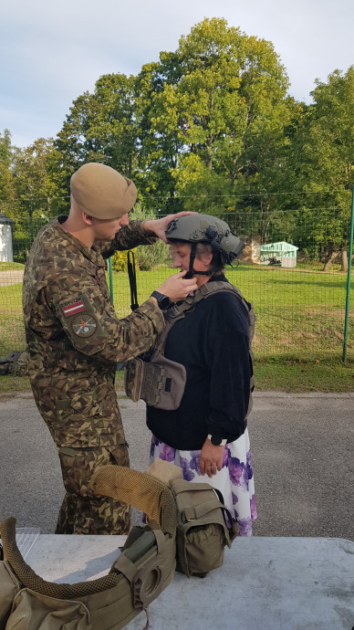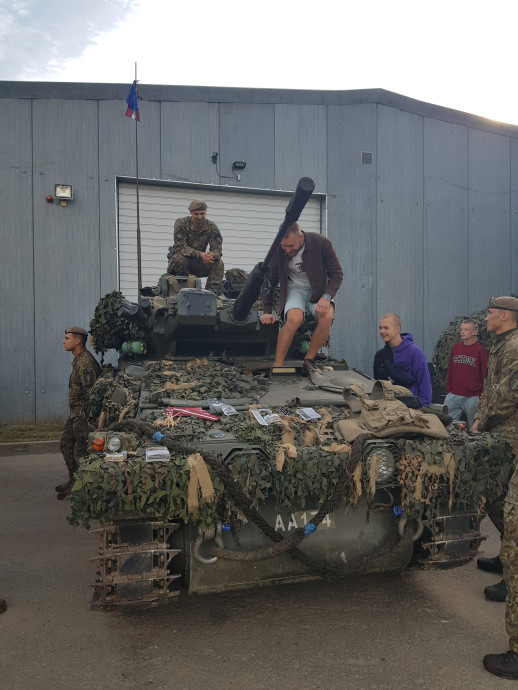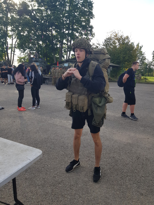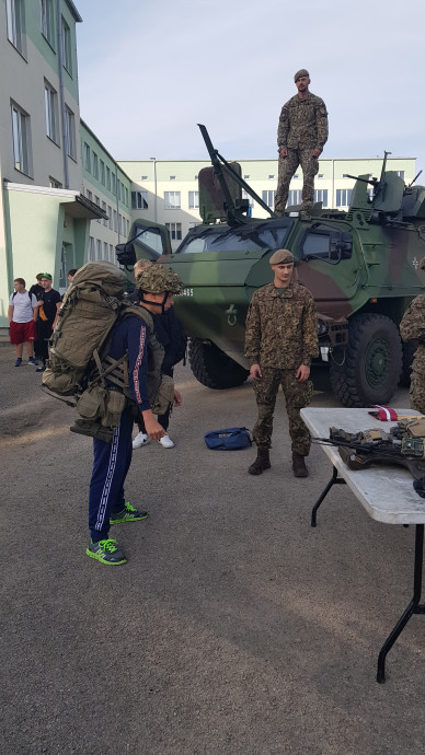 Jaunieši ar interesi uzklausīja karavīru stāstījumu, kā arī aktīvi iesaistījās sarunā par interesējošiem jautājumiem, protams, piedalījās arī piedāvātajās fiziskā spēka un izturības aktivitātēs ( neatpalika arī pedagogi!).