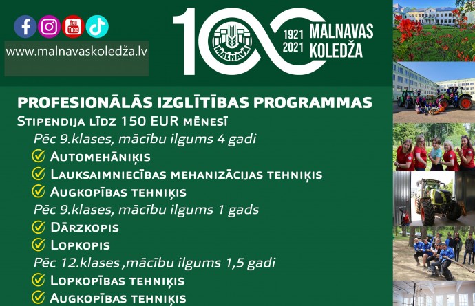 Ja vēlies kļūt par profesionālu un pieprasītu darba tirgū darbinieku, Malnavas koledža palīdzēs Tev par tādu kļūt!