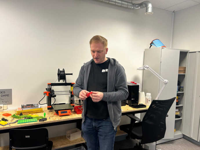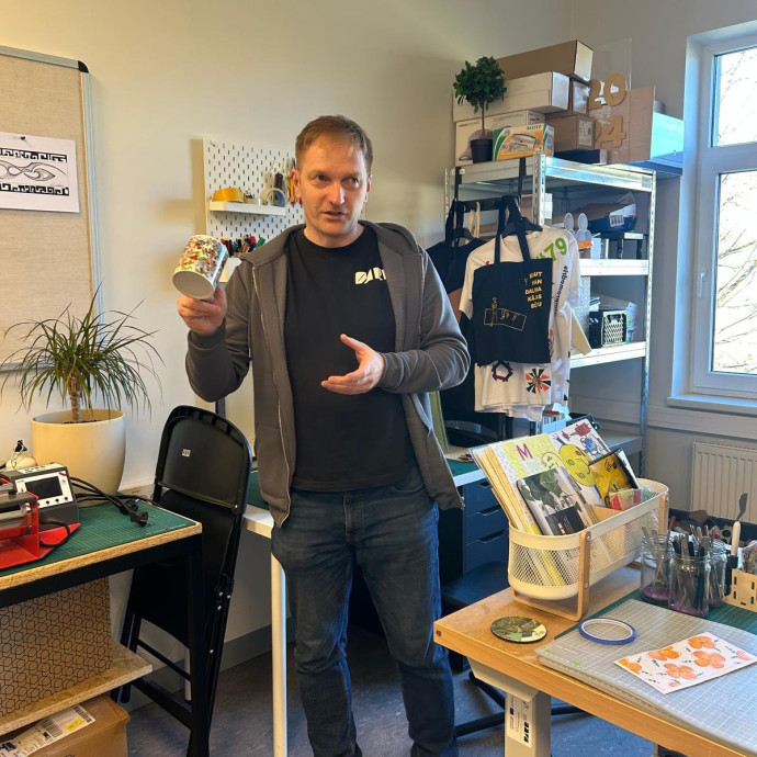 Vizītes laikā tika apmeklēta arī koprades darbnīca DARE, kuras vadītājs Māris Ozols dalījās ar iedvesmojošu pieredzes stāstu par iespējām, ko darbnīca piedāvā mājražotājiem, uzņēmējiem un radošiem entuziastiem – no tehniska atbalsta līdz ilgtspējīgas uzņēmējdarbības veicināšanai.