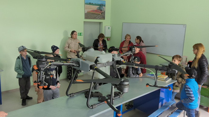 - Ar lielu interesi un aizrautību darbošanās notika arī lauksaimniecības tehnikas laboratorijā - iepazīstot gan sējmašīnu, gan minerālmēslu izkliedētāju, gan siena rulonu presi, gan lauksaimniecības bezpilota aparātu (drons), u.c.