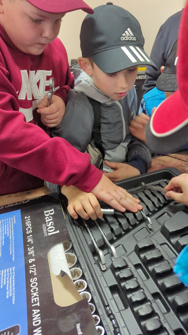 - Automehānikas laboratorijās ieskatīties automašīnas "vēderā" - iepazīt dažādus autodetaļu nosaukumus un saprast, kur tās automašīnā atrodas. Lielu interesi par iespēju izmēģināt savus spēkus raisīja uzdevums - ar mehānisko pacēlāju pacelt velosipēdu un pat lāci;