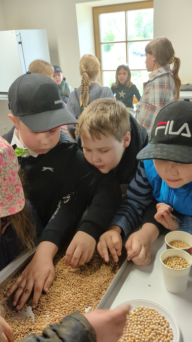 - Apmeklējot augkopības laboratoriju, skolēni gan izmēģināja vēja stipruma mērierīci, gan iepazina dažādu graudaugu sēklas un izmēģināja spēkus zirņu meklēšanā kviešu graudos;