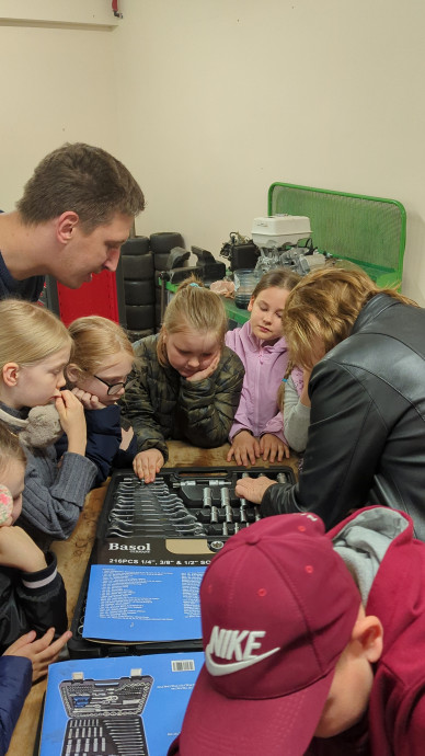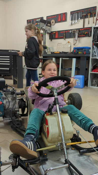 - Kartingu laboratorijā izmēģināt, cik ērti ir sēdēt pie kartinga sūres, kā arī sacensties savā satrpā - kurš ātrāk un precīzāk sakārtos darbarīku koferīti;
