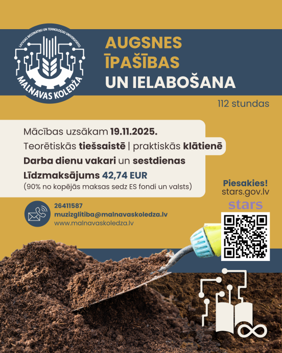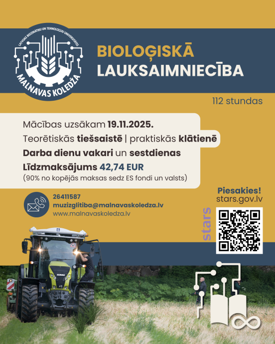 LBTU Malnavas koledža piedalās ES fondu atbalstītajā projektā “Apmācības nodarbinātajiem”, piedāvājot iespēju pilnveidot profesionālās zināšanas un prasmes lauksaimniecības nozarē. Piedāvātās apmācību programmas palīdzēs kļūt zinošākam, efektīvākam un videi draudzīgākam saimniekam.