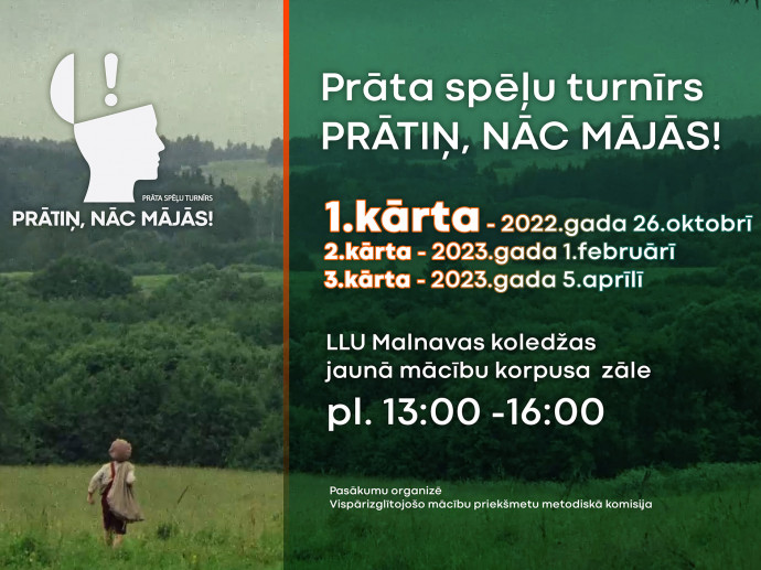 Prāta spēļu turnīrā “Prātiņ, nāc mājās!” tiks noskaidrota gudrāko, atjautīgāko un zinošāko dalībnieku LLU Malnavas koledžas prāta spēļu komanda.