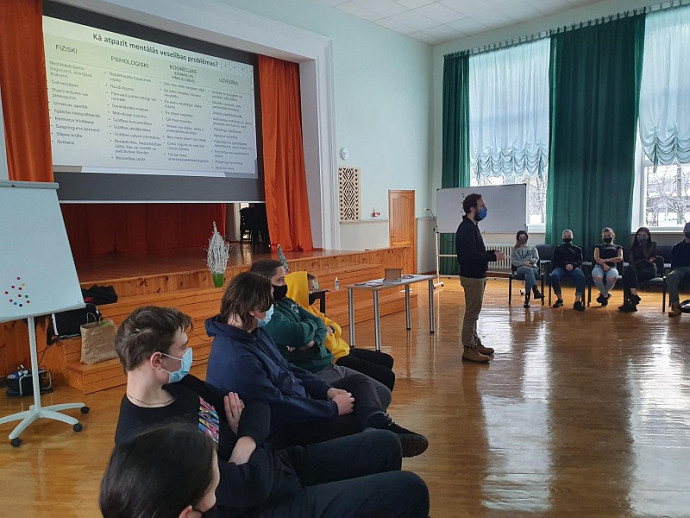 1.decembrī SIA "Bērnu un pusaudžu resursu centrs" speciālists Vikotrs Gallers kopā ar jauniešiem diskutēja par šobrīd aktuālo: Kāpēc mentālā veselība ir svarīga. Grūtības mentālās veselības jomā, ar kurām saskaras jaunieši. Ko darīt un kā reaģēt, ja ir grūtības. Kā saglabāt mentālo veselību? Preventīvie pasākumi Izglītības iestādē – Mobings un Bulings. Kā varam uzturēt mentālo veselību attālināto mācību laikā. Kur meklēt informāciju palīdzības iespējas?