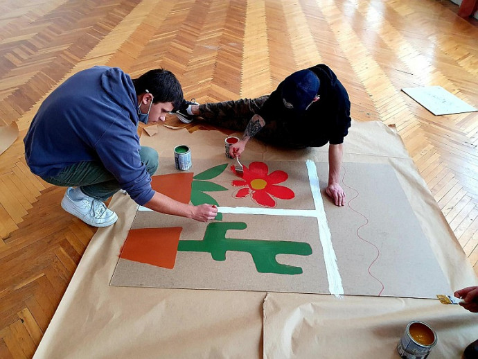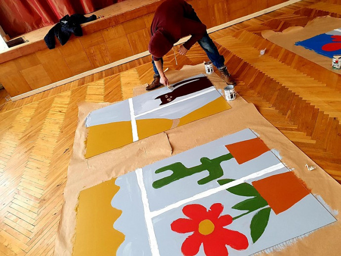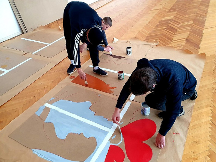 Topošie automehāniķi, augkopības tehniķi un lauksaimniecības tehnikas mehāniķi, skolotāja Daiņa Poikāna vadībā, aizrautīgi zīmē logu ailes vecajai mājai, kas atrodas blakus Malnavas koledžas dienesta viesnīcai un pansionātam "Mūsmājas"