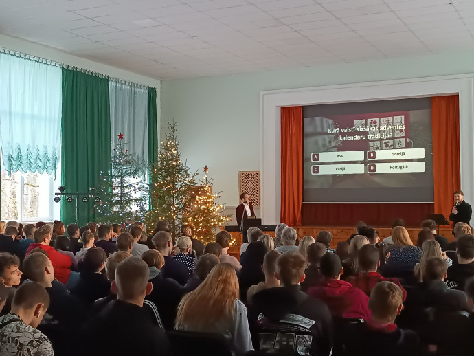 Pasākuma laikā jaunieši uzzināja arī mazliet par Ziemassvētku dziesmu rašanās vēsturi un tradīcijām. Mūziķiem izdevās iesaistīt jauniešus un pedagogus gan viktorīnā, gan arī kopīgā populārāko Ziemassvētku dziesmu dziedāšanā.