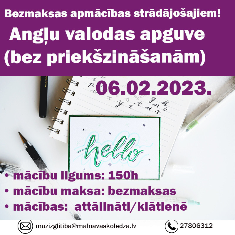 - Angļu valoda (bez priekšzināšanām, 150h)